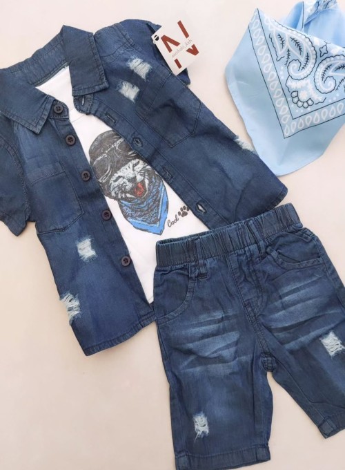 ΣΕΤ ΜΠΛΕ ΜΑΛΑΚΟ ΤΖΙΝ ΒΕΡΜΟΥΔΑ , ΠΟΥΚΑΜΙΣΟ , ΜΠΛΟΥΖΑΚΙ ΜΕ ΣΤΑΜΠΑ ΚΑΙ ΜΠΑΝΤΑΝΑ ΓΑΛΑΖΙΑ ΜΕ ΛΑΧΟΥΡΙΑ